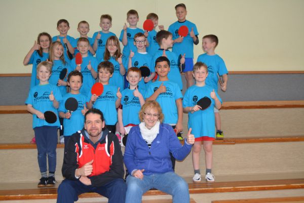 Mit der gerade erst bestandenen C-Trainer Lizenz ausgestattet nahm Henrik Loos das Training mit rund 20 Kindern auf. Der hessische Tischtennis-Verband hat in einem Projekt (wird betreut vom Schulsportbeauftragten Tobias Beck) hierfür altersgerechte Anfänger-Schläger, Trainingsbälle und sogar ein T-Shirt für jeden Teilnehmer/in zur Verfügung gestellt und unterstützt somit das Angebot maßgeblich.